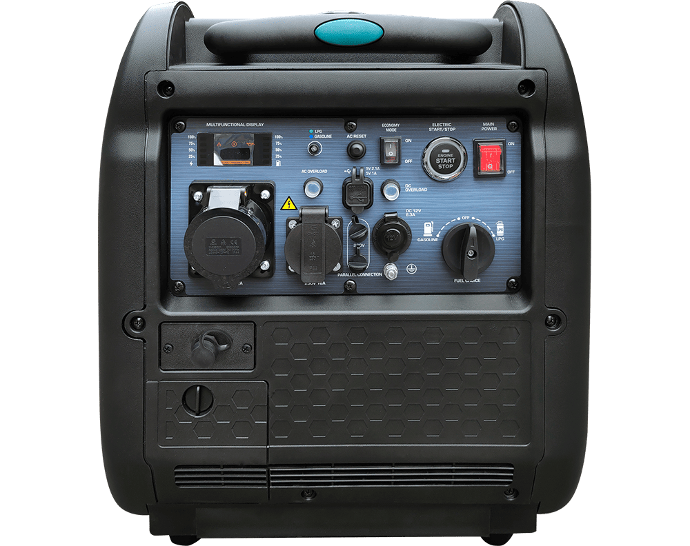 Toate funcțiile sunt dispuse convenabil pe un panou de control ergonomic, care include un ecran LED multifuncțional ce afișează contorul de ore de funcționare, tensiunea și frecvența, precum și indicatori de stare care semnalizează suprasarcina, nivelul scăzut de ulei și alte avertismente. În plus, panoul dispune de un buton de reset pentru repornirea sistemului de control, un conector pentru conectarea în paralel a generatorilor, două porturi USB (5V/1A și 5V/2.1A), o priză de 230V și o bornă de împământare.